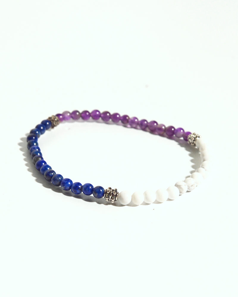 The Calm + Clarity Bracelet combines the harmonizing energies of Amethyst, Lapis Lazuli, and Howlite, creating a powerful accessory for peace, focus, and emotional balance. Designed to support you through daily stresses and mental clutter, this bracelet is ideal for those seeking a calm, clear mindset.