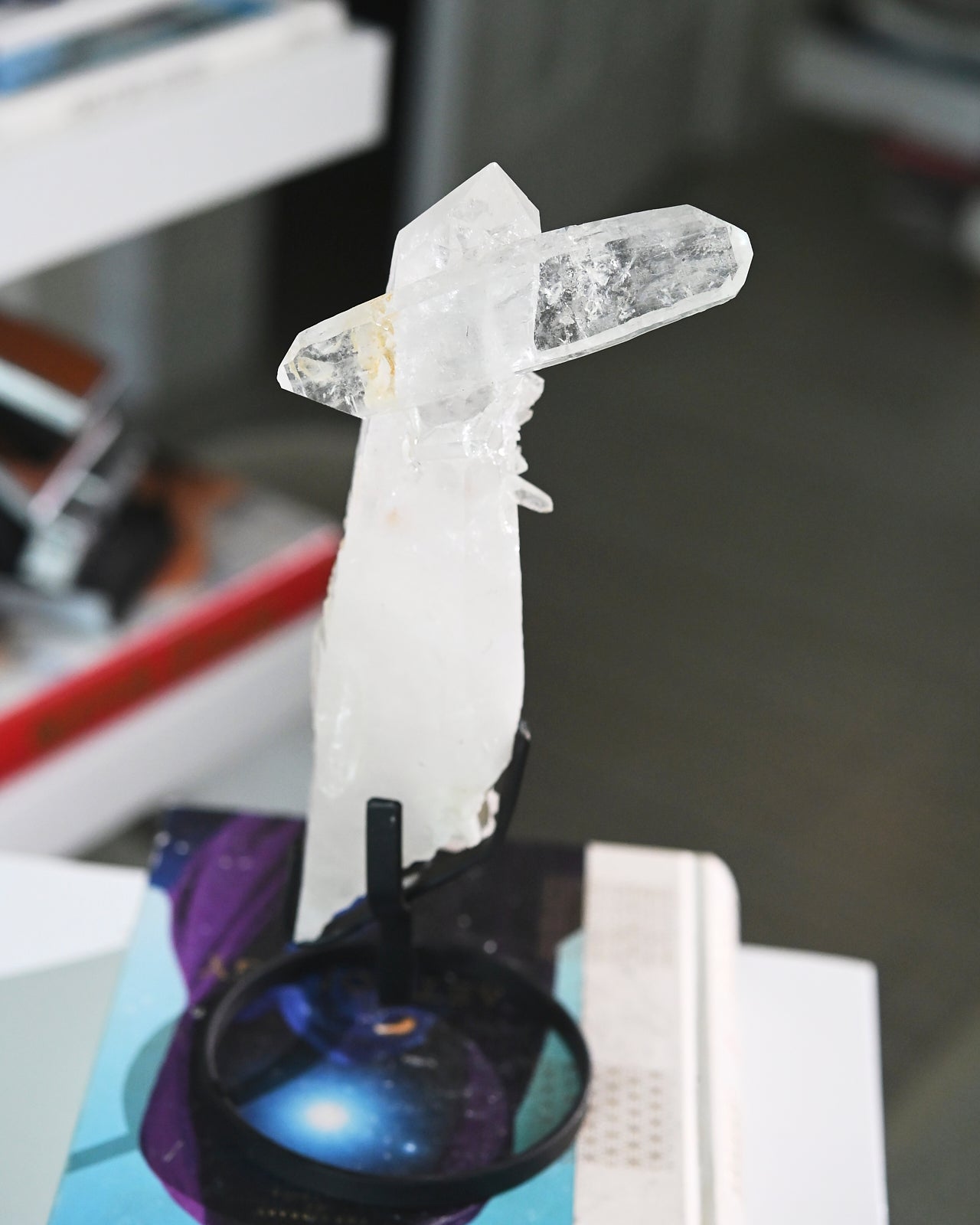 Add an element of timeless beauty and spiritual energy to your space with this rare Double-Terminated Lemurian Quartz Crystal. Known for its unique formation, this stunning crystal is double-terminated, allowing energy to flow freely in both directions. Found in Brazil, Lemurian Quartz is revered for its spiritual properties, but this particular formation is a true treasure for any collector or design enthusiast.