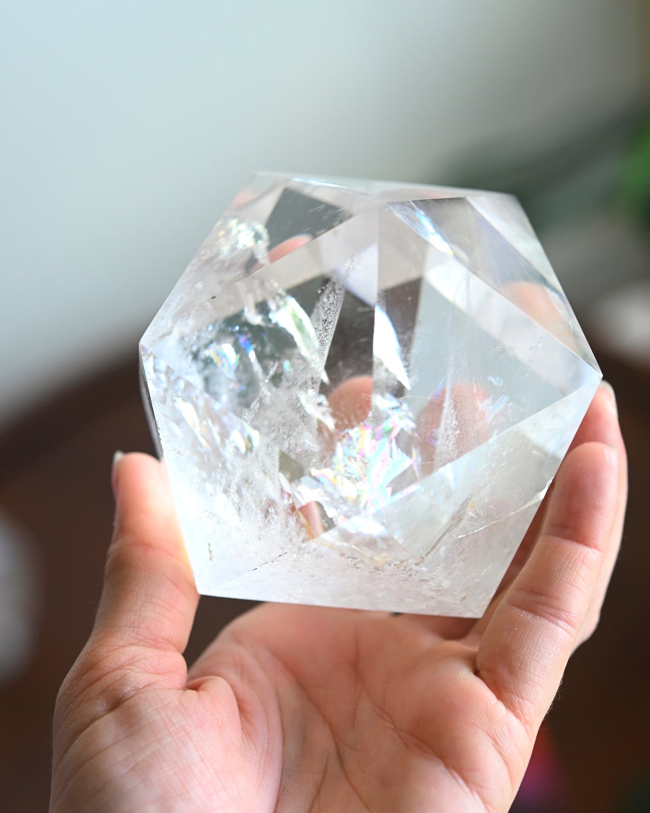 Sourced from premium deposits, this A-Grade Geometric Quartz is known for its crystalline perfection, offering unparalleled clarity and energy amplification. The striking geometric formation not only reflects light beautifully but also symbolizes structure, balance, and the sacred geometry of the universe. Displayed on a custom stand, this stunning quartz piece adds sophistication and harmony to any room.
