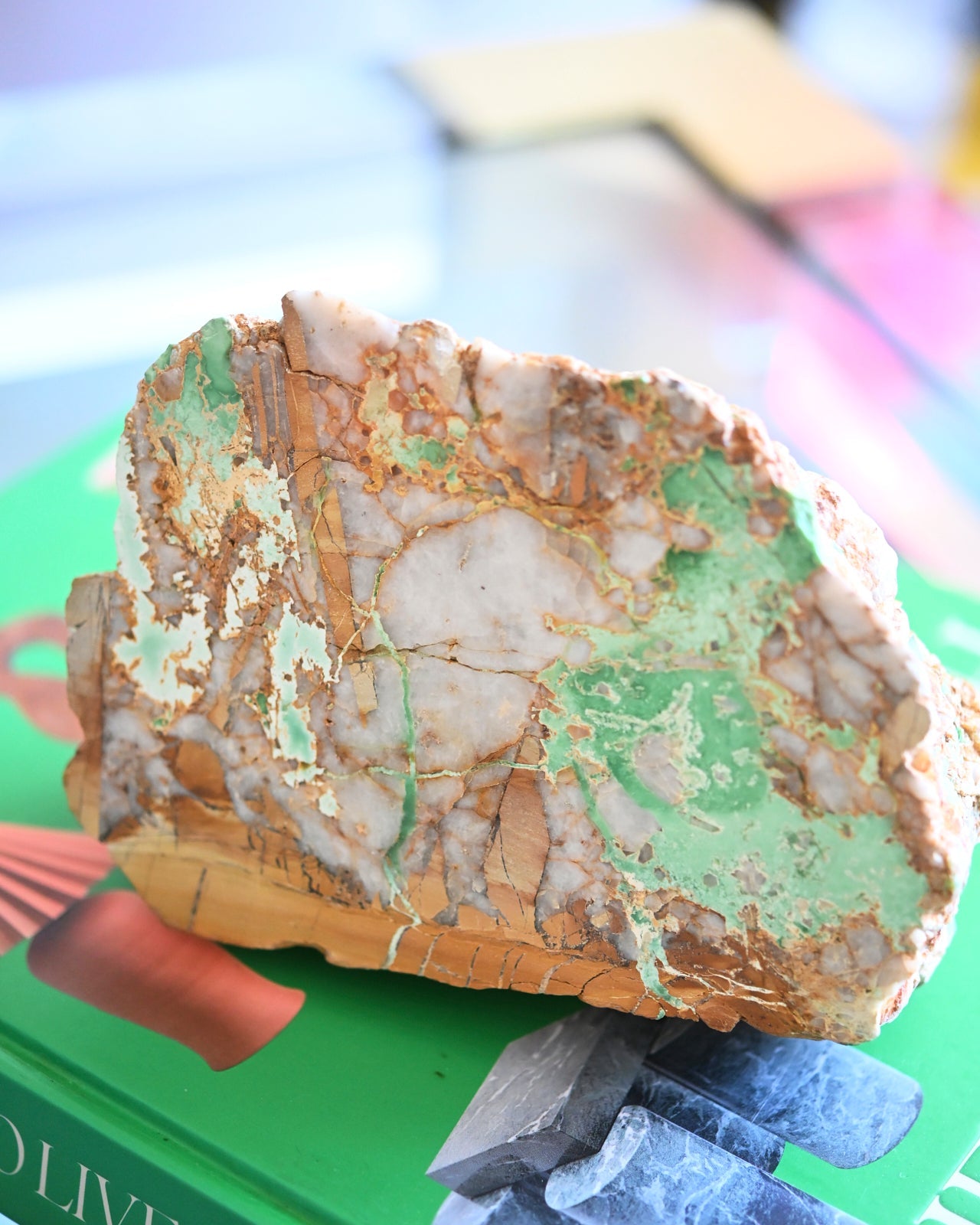 Closely related to turquoise, Variscite is known for its calming energy and rarity, making this a unique addition to any collection. Whether displayed as a statement piece or admired for its geological significance, this one-of-a-kind specimen is a true celebration of nature's artistry.